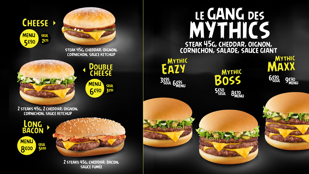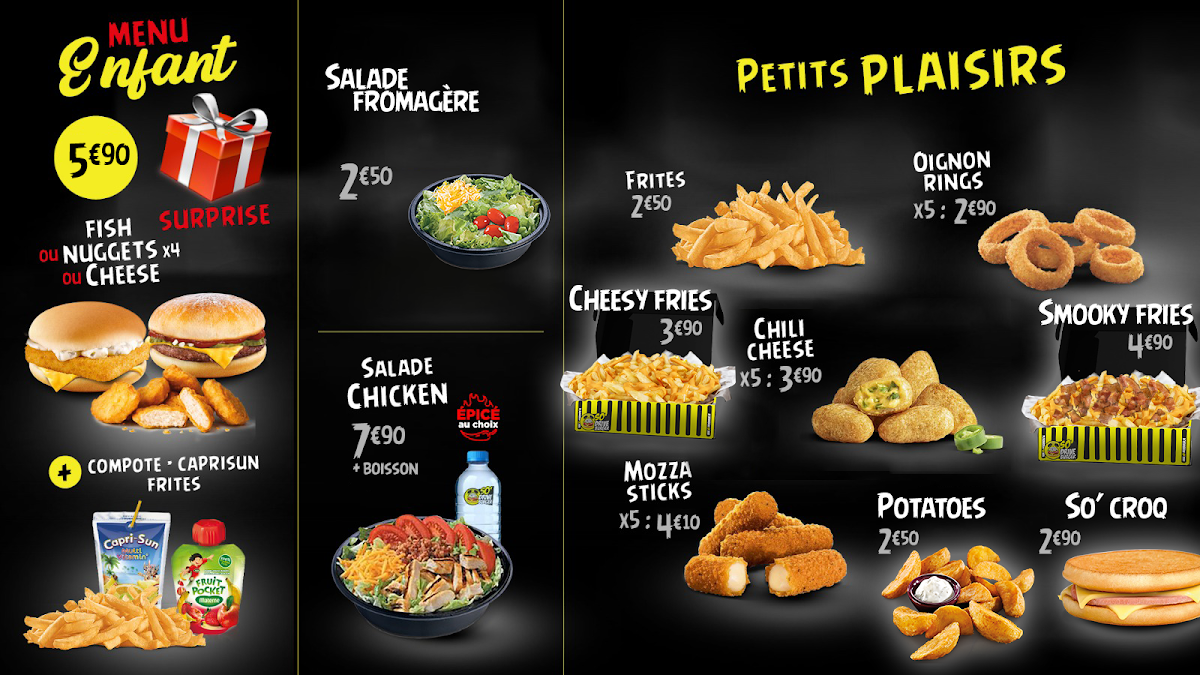 The menu is organized to facilitate quick ordering and convenient dining, suitable for individuals seeking fast food solutions in Lille, France.