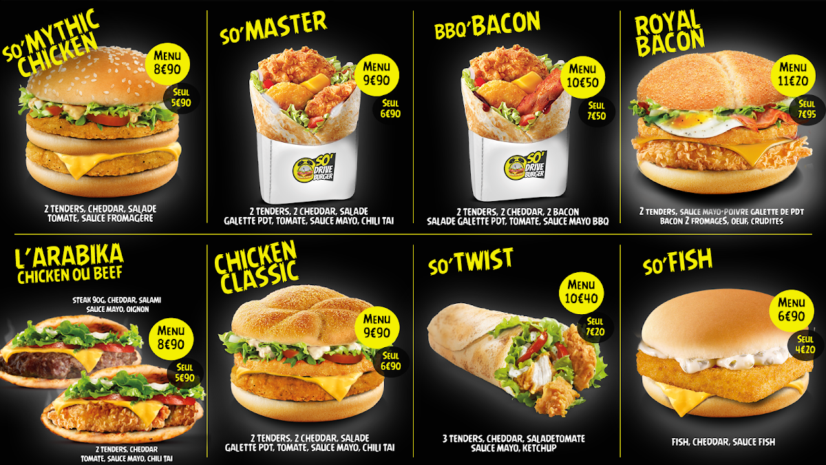 So Drive Burger Lomme Menu