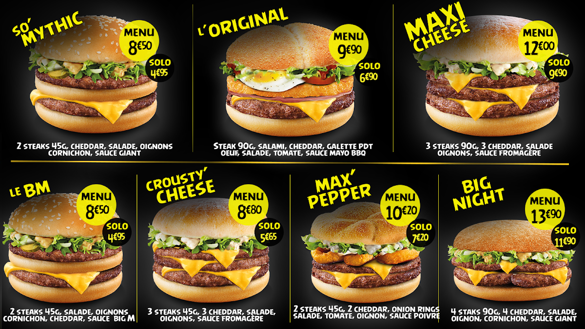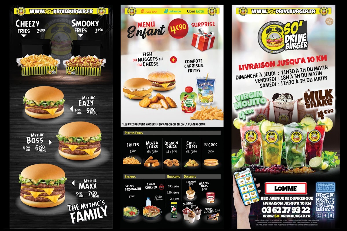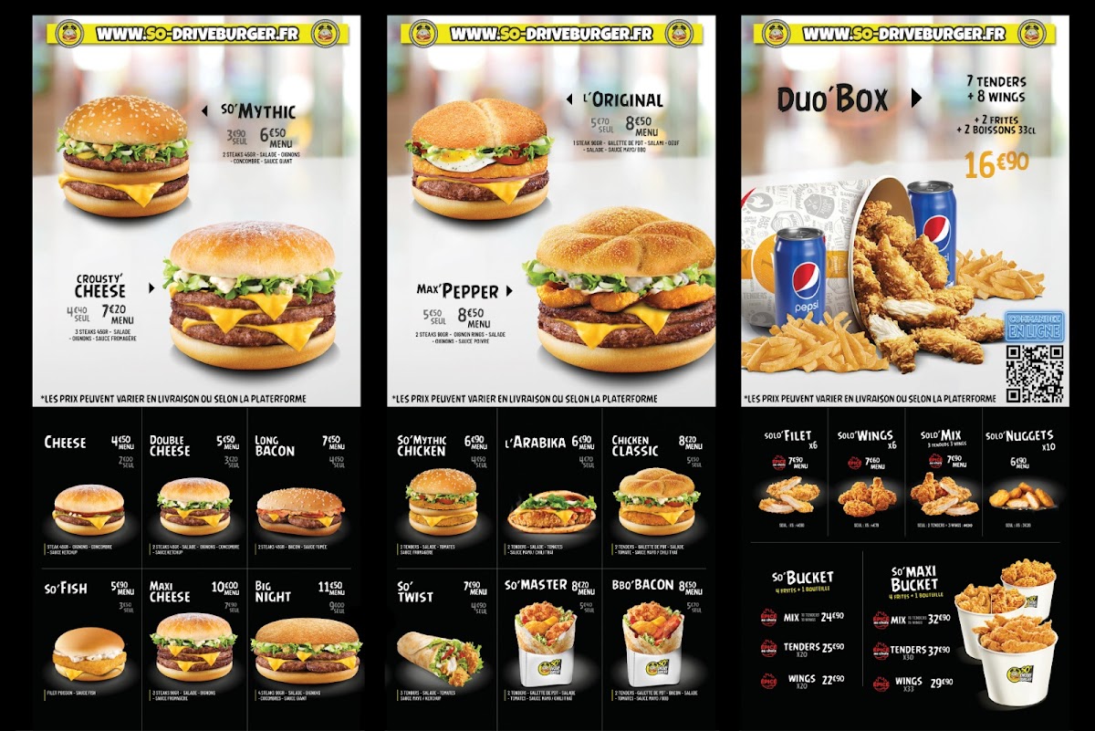 The menu at So Drive Burger Lomme offers a selection of fast food items focused primarily on burgers. Visitors can expect classic burger options along with a notable item called the Burger Au micro-ondes. The menu caters to quick meals suitable for lunch, casual dining, or when on the go.